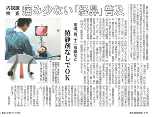 二つは、スコープ自体が、従来の約半分(5mm)と超細になり、しなやかになったこと。このため鼻から挿入することが可能になりました。